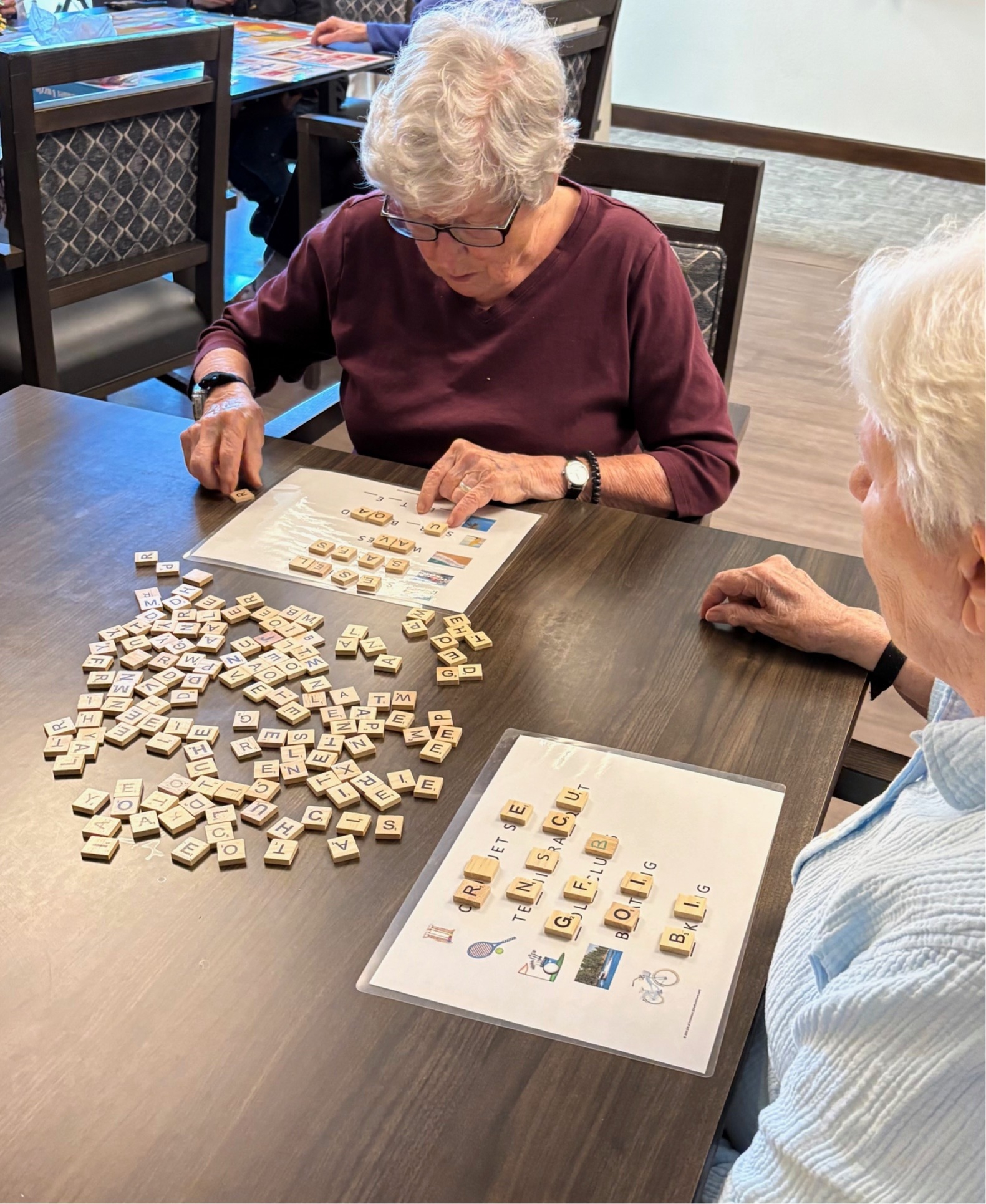 When you have a resident who has always loved reading but now seems to drift—wandering with a book in hand, watching television instead of engaging, or never actually opening the book—it can be a sign that reading has become difficult or overwhelming. Instead of drawing attention to the change, gently redirect them into a related, confidence‑preserving activity. One effective approach is to ask for their assistance. Presenting an activity as a meaningful task can restore a sense of purpose and competence. For example: “I’m working on a missing‑letter game, and I could really use your help. Would you help me search for a specific letter in this pile of tiles?” This kind of invitation feels collaborative rather than corrective, and it allows the participant to engage without feeling exposed or judged.