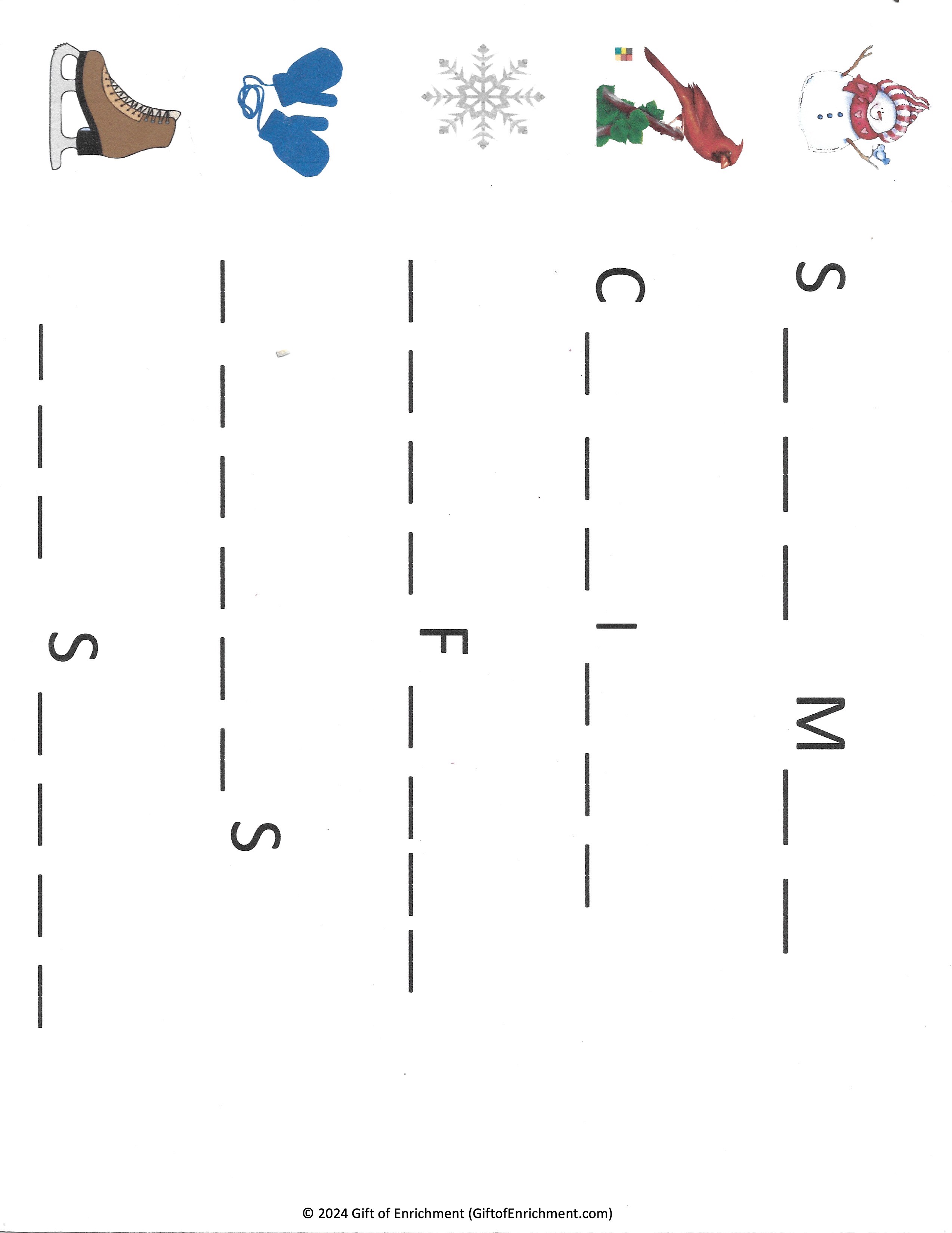 Missing Letters is a fun and educational game that helps cognitive skills. Each page has a list of words with one or more letters missing from each word and an image associated with the word. The dementia participant, along with a set of letters, can use them to fill in the blanks. For early-stage dementia (D1), more missing letters are provided for each word.