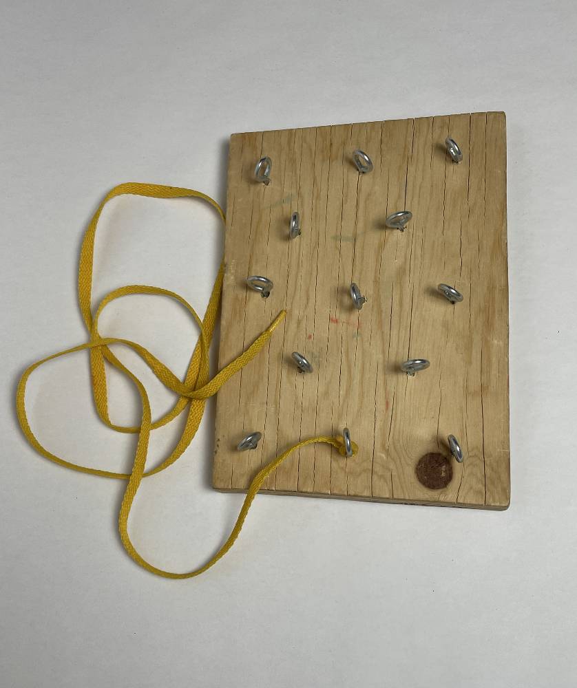 • Wooden board, loops and shoelace