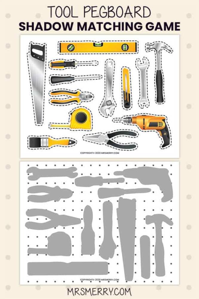 • Matching tools on a printed pegboard.