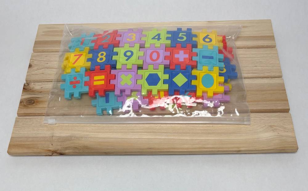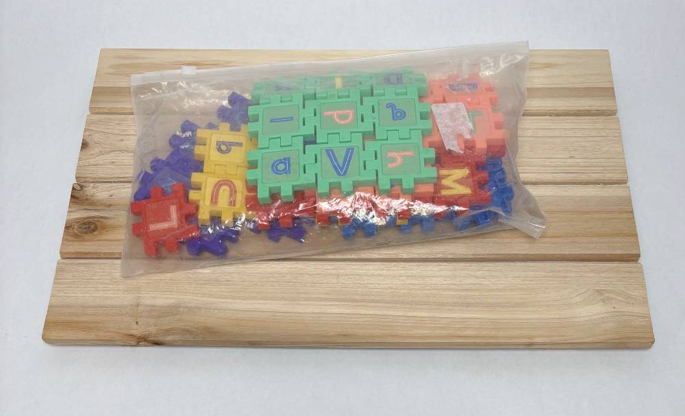 We have two gently used Interlocking Waffle Building Blocks bags: 1. Numbers and 2. Letters (view photos).