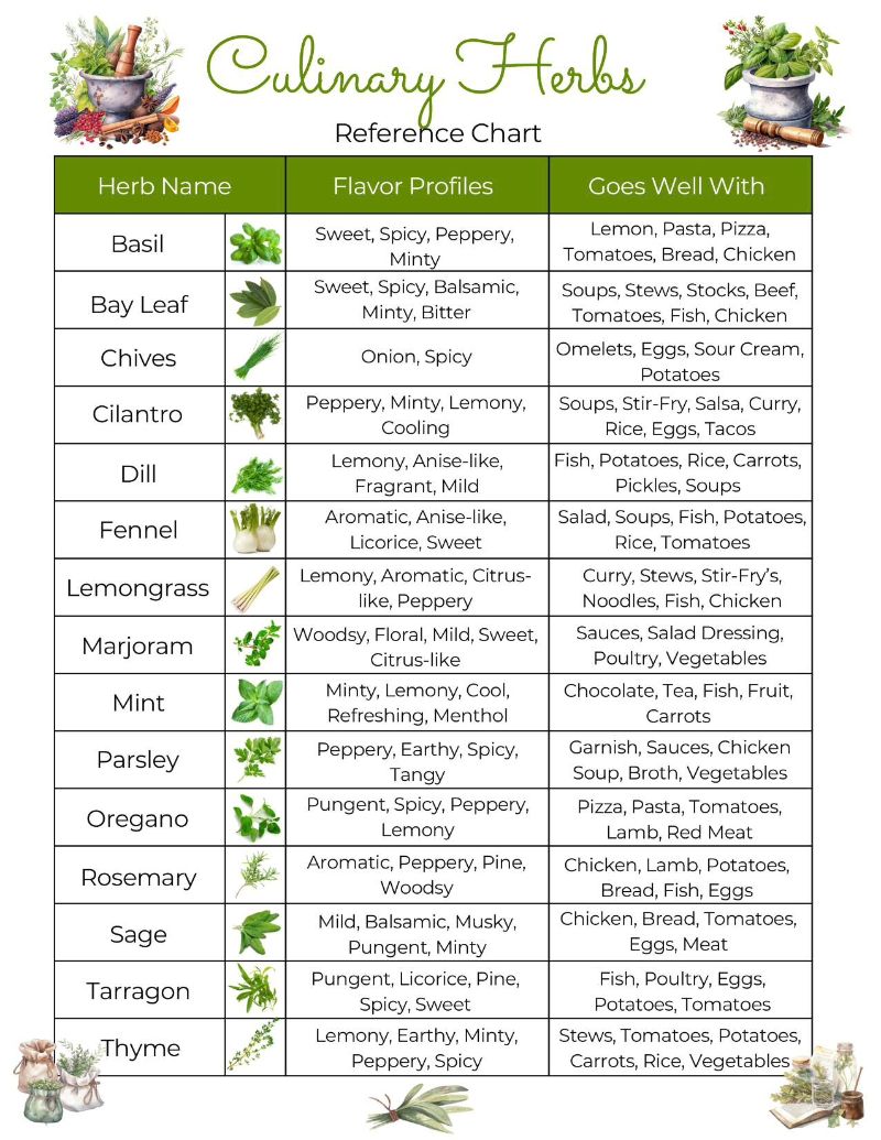 • Fresh or dried herbs (e.g., basil, rosemary, mint, parsley)