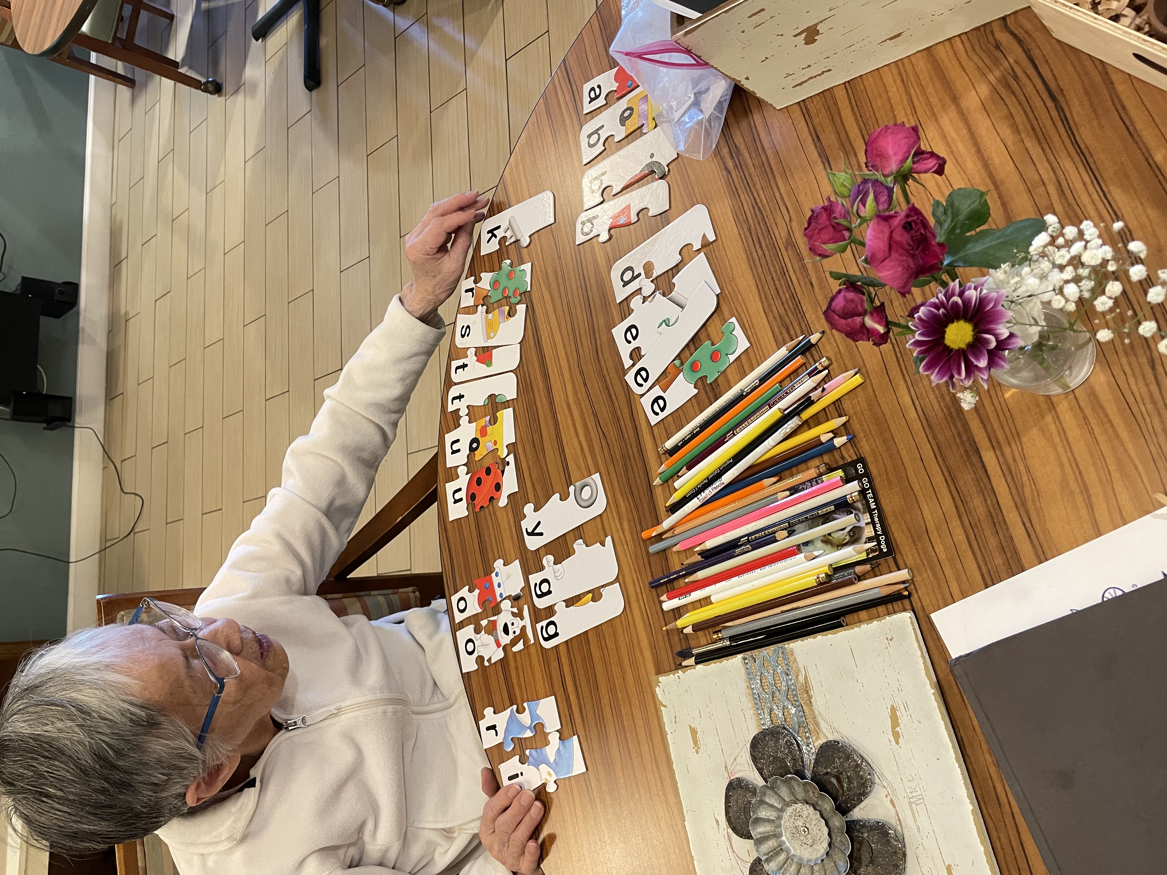 These colorful three-letter puzzle card sets provide your loved one the opportunity to spell by associating the object with the word and correctly assembling the puzzle pieces. Includes 20 puzzle sets. Divide the puzzles into 2 sets of 10 puzzles – do not overwhelm your loved one with 20 puzzles.