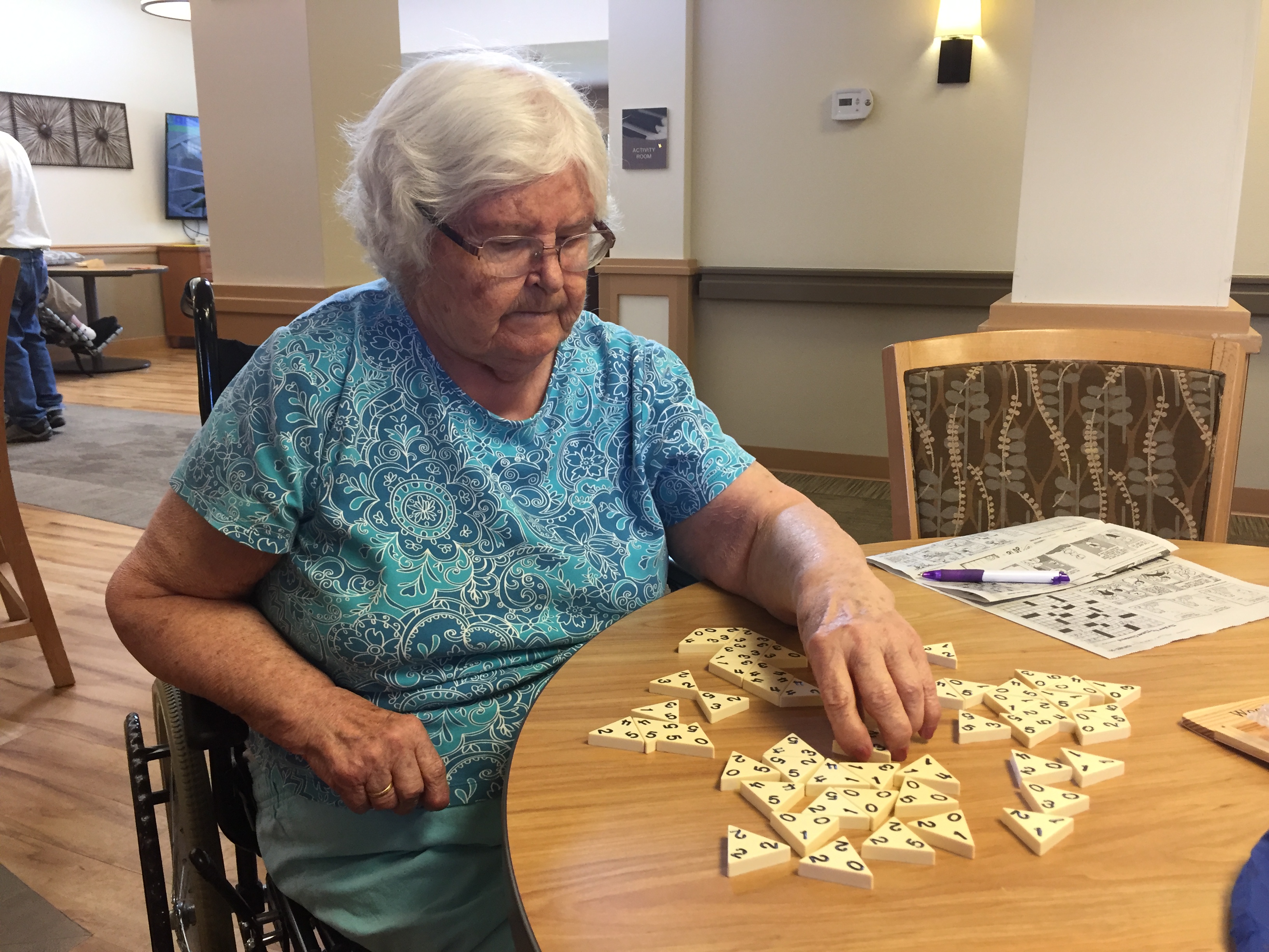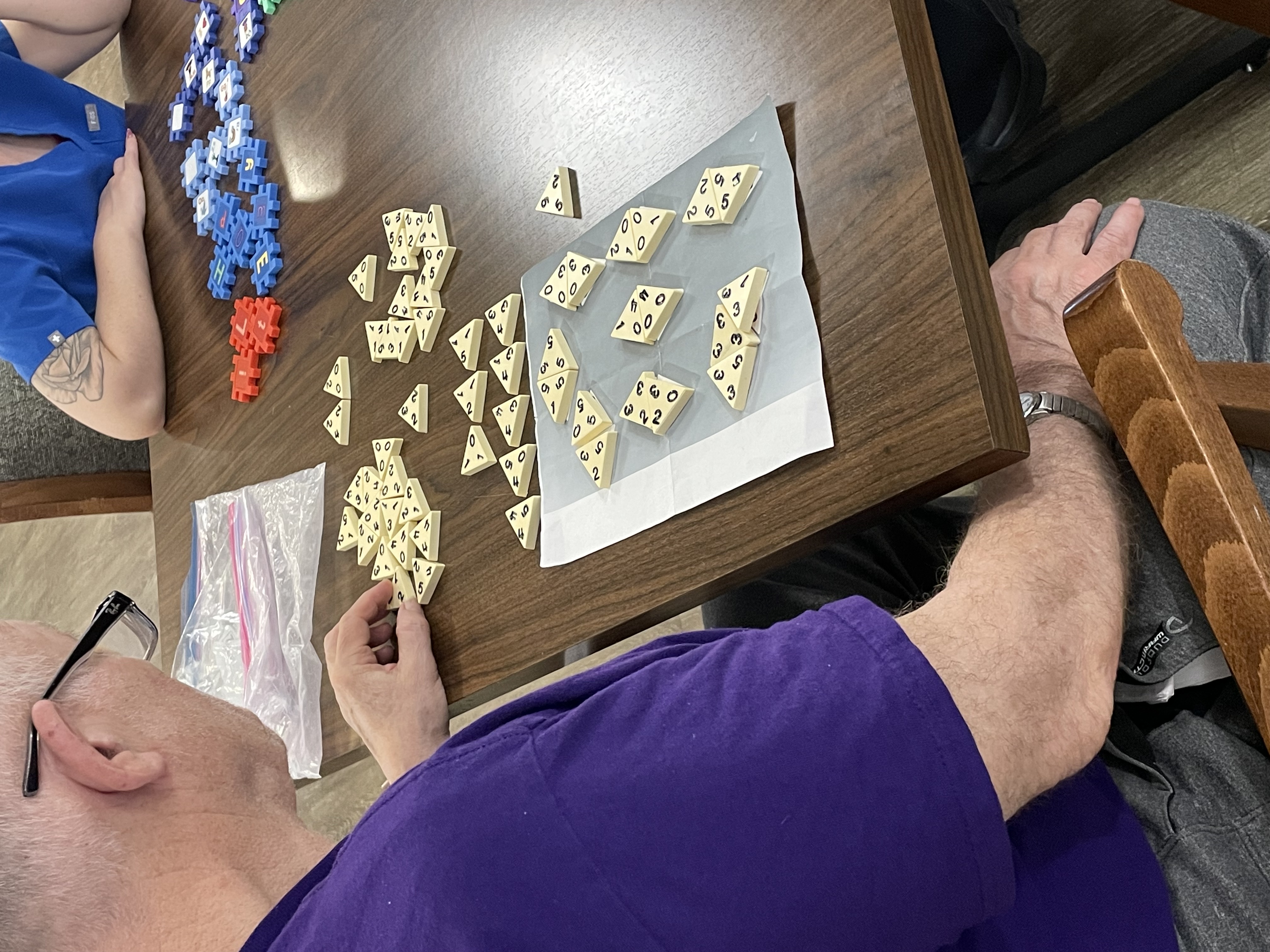 Triominos, along with a simplified matching activity using pairs of matching Triominos, can be a wonderful way to engage individuals with dementia.