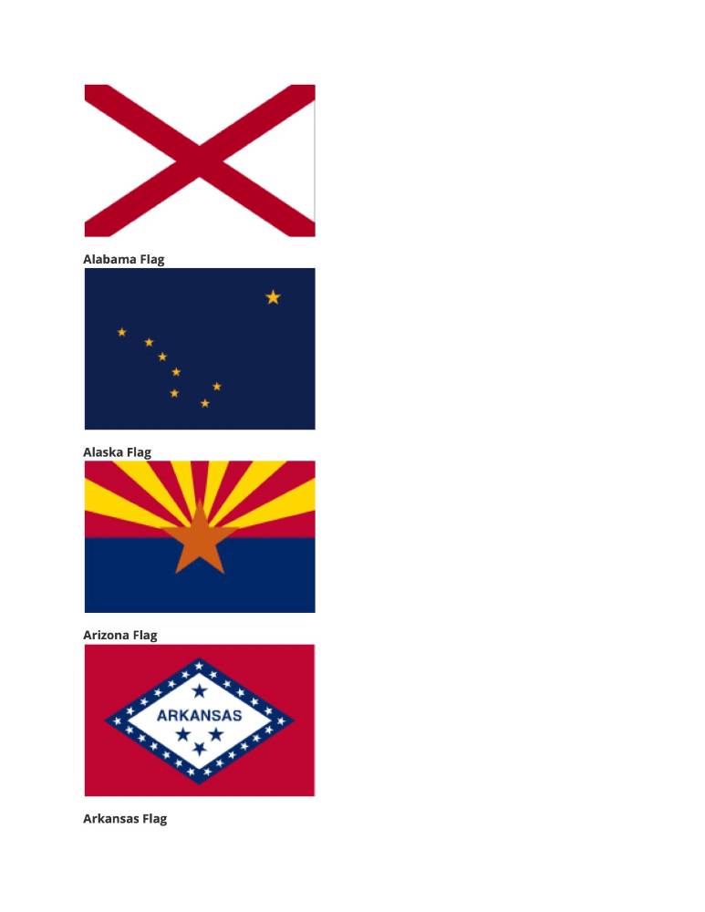 You will need a US map and a set of cards with images of state flags. You can use printed maps and flags (see below USAflags.pdf) or a physical atlas. Explain the task to the participant. Show them the US map and the state flags, and encourage them to explore and point out states and their flags. Start with a simple exercise of matching a state flag card with its corresponding state on the map. For example, show the flag of Colorado and find Colorado on the map. USAFlags.pdf