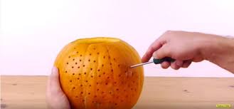 Explain the task to the participant. Show them the pumpkin and the tools, and explain how to carve the pumpkin safely. Start with a simple demonstration of how to cut off the top of the pumpkin, scoop out the insides, and carve a basic design.